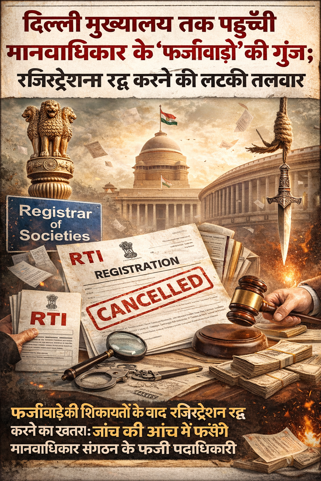 दिल्ली मुख्यालय तक पहुँची मानवाधिकार के ‘फर्जीवाड़े’ की गूंज; रजिस्ट्रेशन रद्द करने की लटकी तलवार