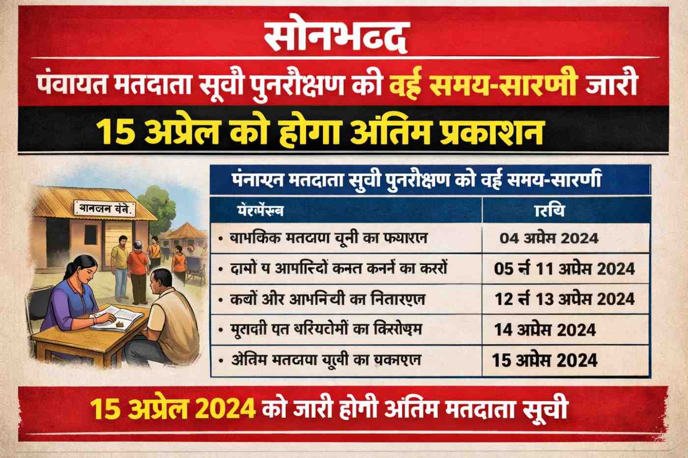 सोनभद्र: पंचायत मतदाता सूची पुनरीक्षण की नई समय-सारणी जारी, 15 अप्रैल को होगा अंतिम प्रकाशन