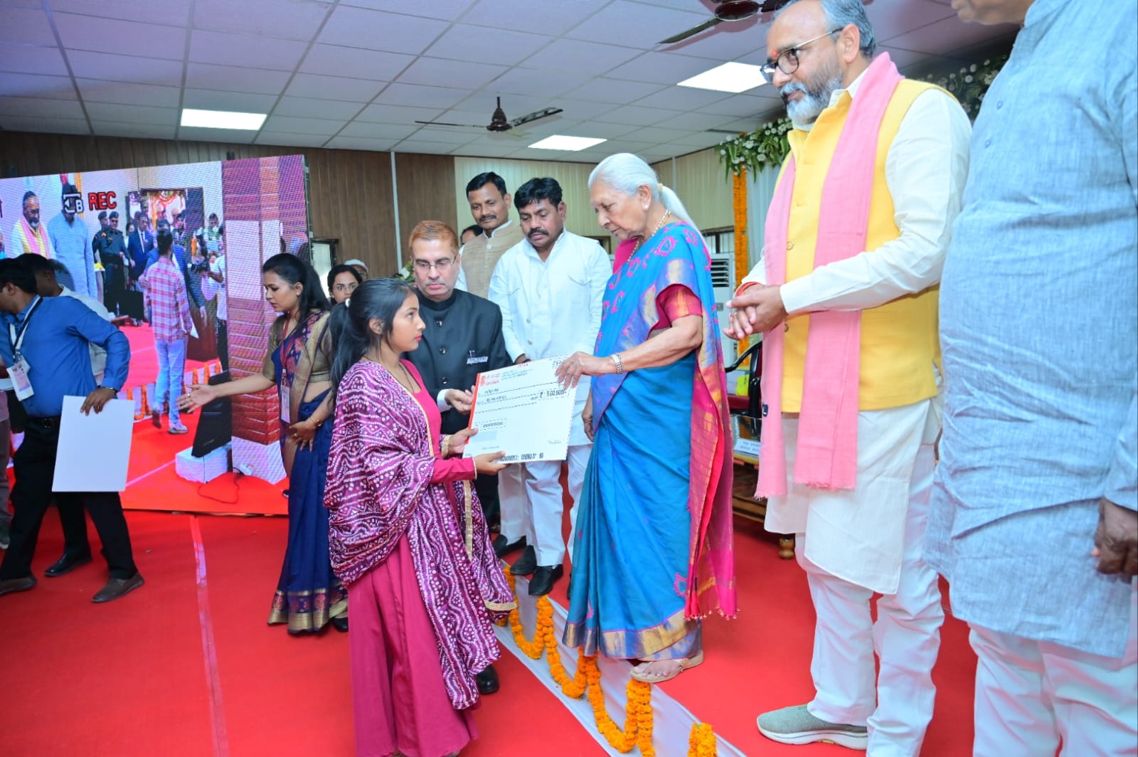 सोनभद्र: राज्यपाल आनंदीबेन पटेल ने विकास योजनाओं के लाभार्थियों को बांटी किट और प्रमाण पत्र