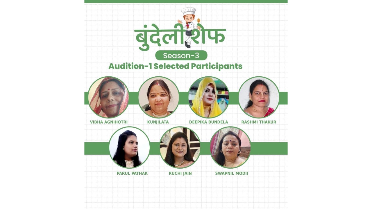 पहले ऑडिशन से मिले बुंदेली पाक कला के 7 होनहार, बुंदेली अप्पे, दहीबड़े, थडुले, बुंदेली थाली, इटावा चाट, पाव भाजी, फ्राइड राइस, पनीर बर्फी और भवहा ककया की चटनी ने लुभाया जजेस का दिल