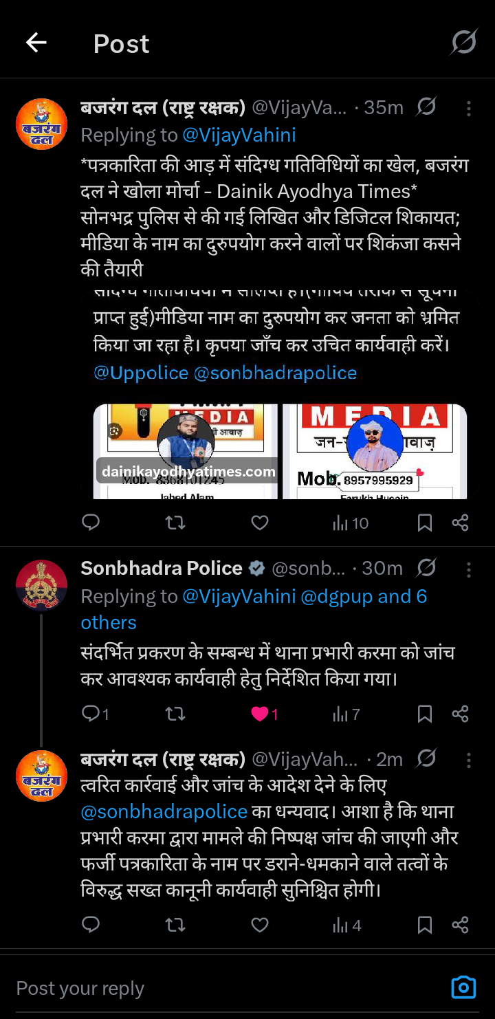 सोनभद्र: फर्जी पत्रकारिता की आड़ में संदिग्ध गतिविधियों का खेल, बजरंग दल की शिकायत पर पुलिस ने शुरू की जांच
