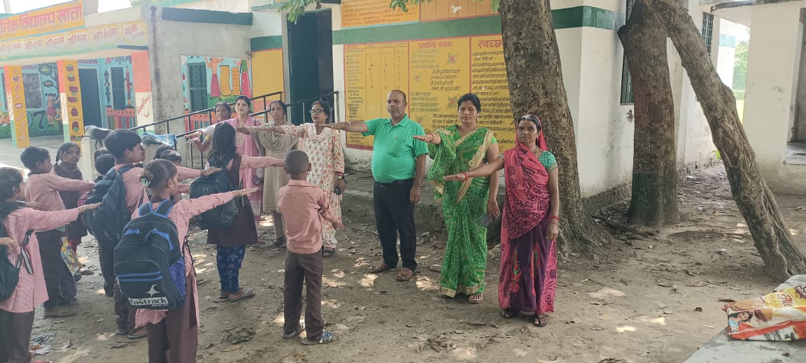 परिषदीय स्कूलों में संचारी रोगों के नियंत्रण हेतु शपथ दिलाकर अध्यापकों एवं बच्चों ने गांवों में जागरूकता रैली निकाली।