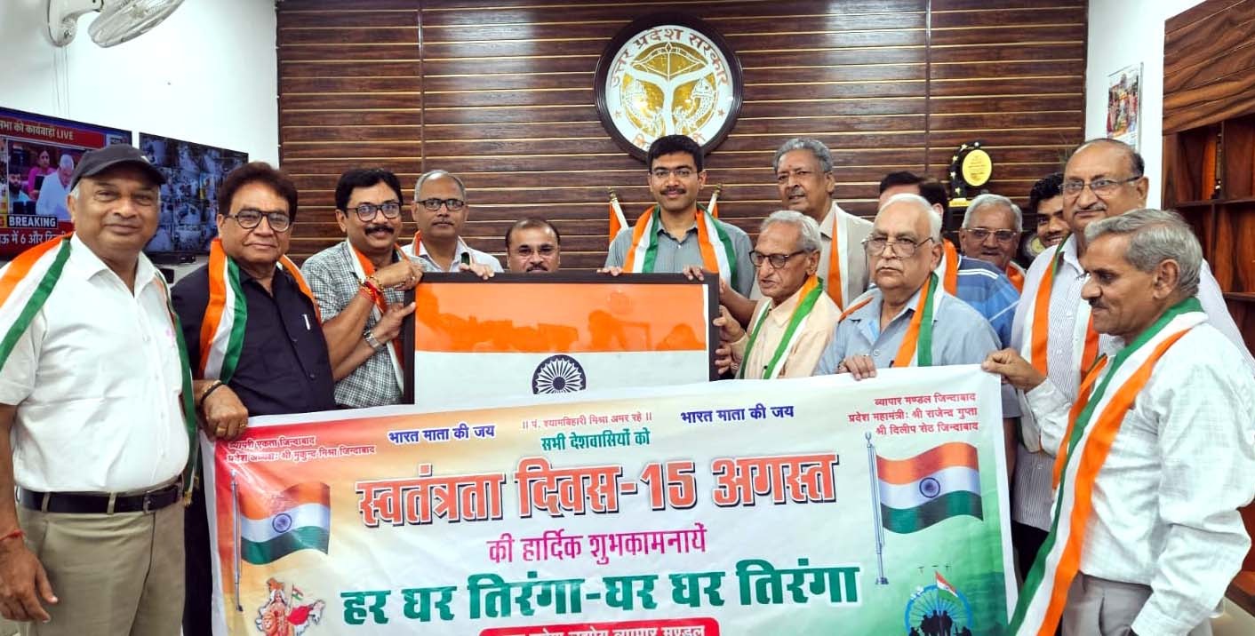जिला व्यापार मण्डल द्वारा जिलाधिकारी को तिरंगा भेंट कर शुरू किया गया देश की आजादी के पर्व घर-घर तिरंगा कार्यक्रम