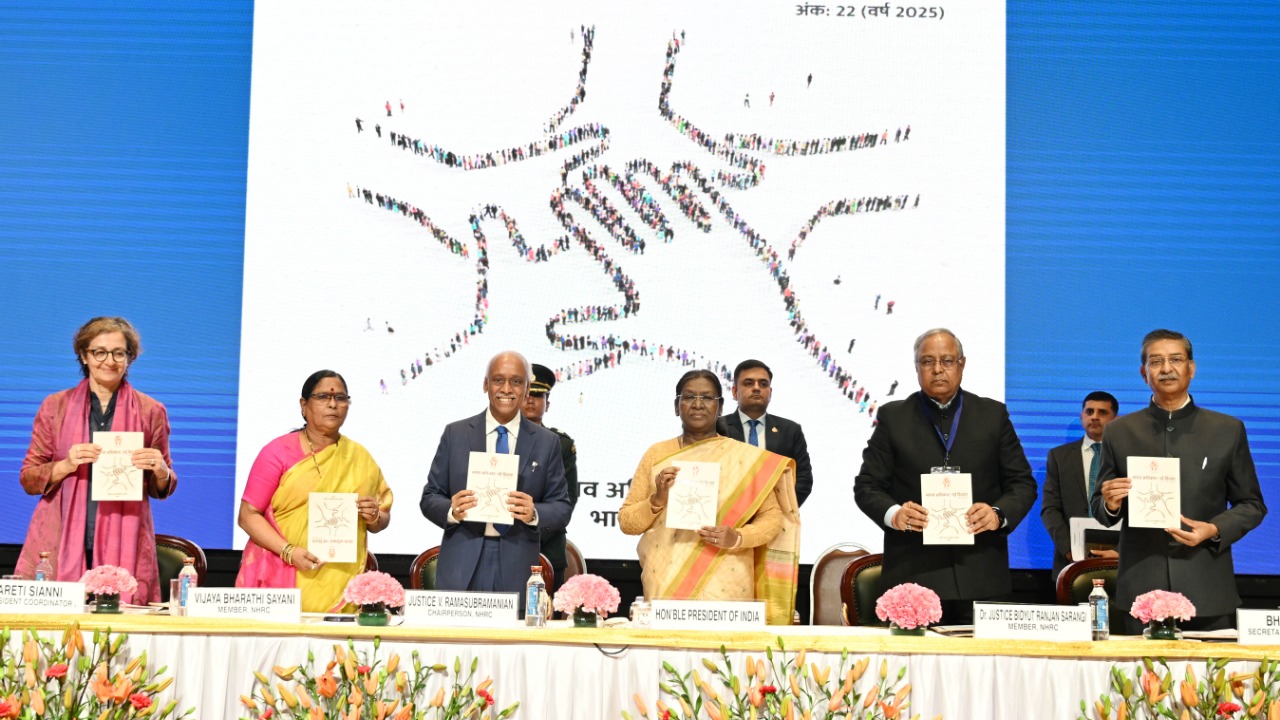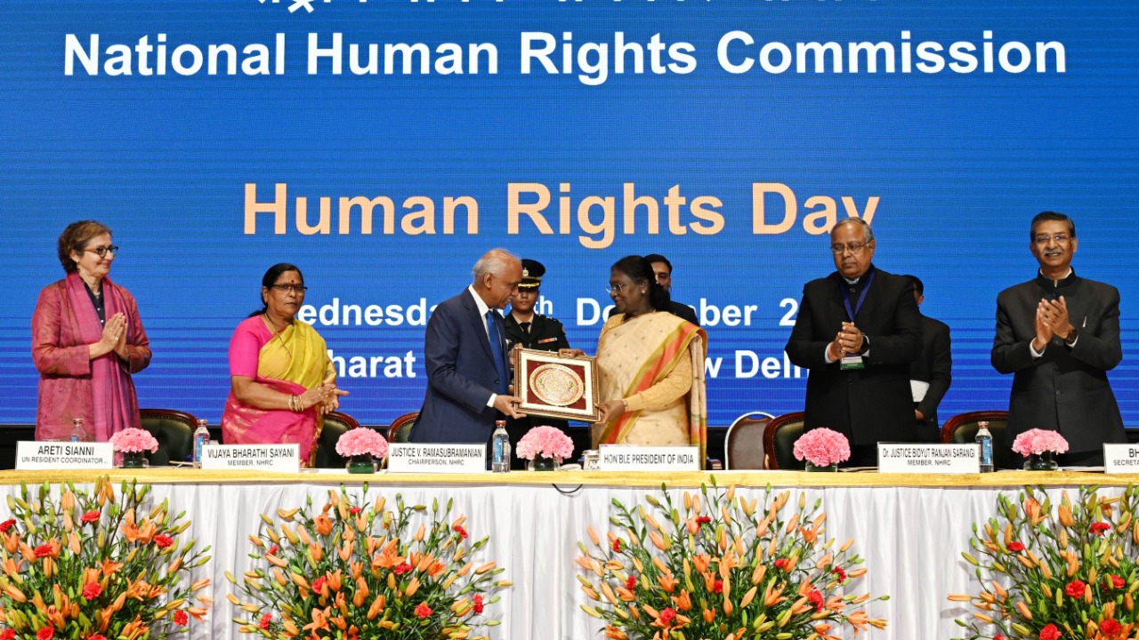 नई दिल्ली। द्रौपदी मुर्मु आज (10 दिसंबर, 2025) नई दिल्ली में राष्ट्रीय मानवाधिकार आयोग के मानवाधिकार दिवस समारोह में शामिल हुईं और उपस्थित लोगों को संबोधित किया।