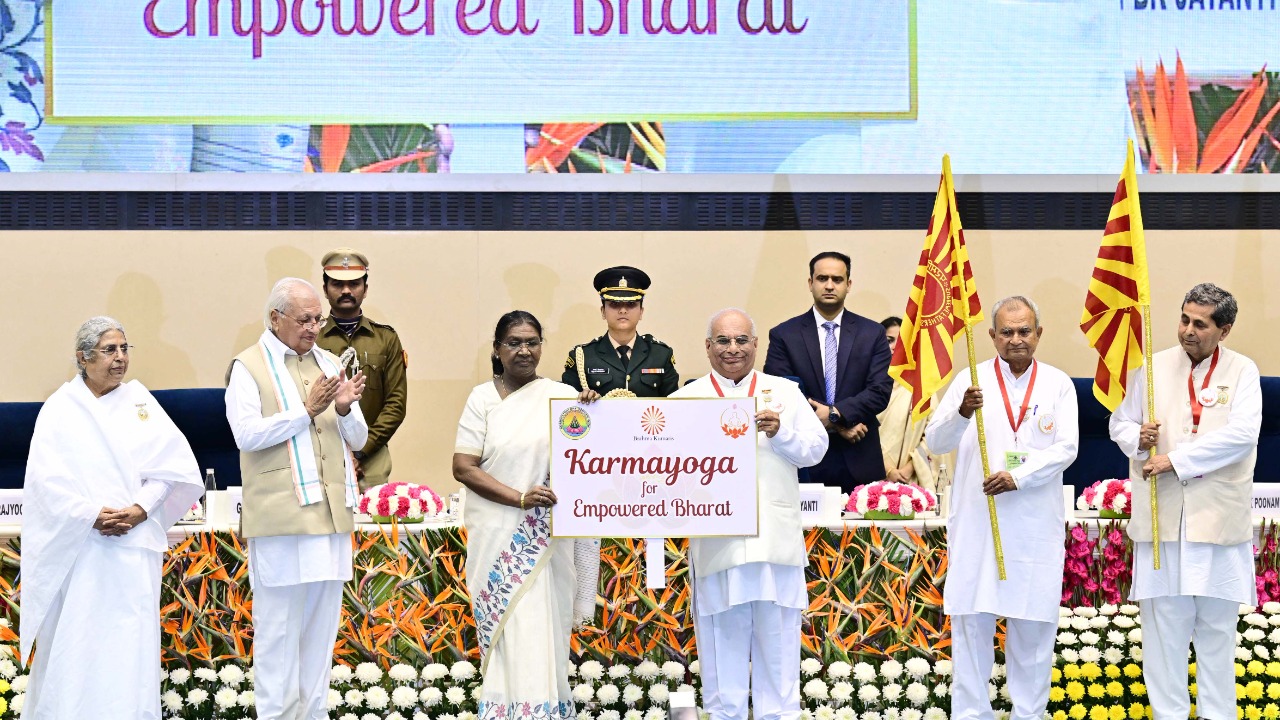 द्रौपदी मुर्मु ने कहा कि ब्रह्म कुमारी ईश्वरीय विश्व विद्यालय राजयोग की शिक्षा देता है जो केवल एक स्थान पर बैठकर आत्मचिंतन करने तक सीमित नहीं है। इसका एक मूलभूत अंग कर्मयोग है। कर्मयोग का अर्थ -अपने सभी दायित्वों को निभाते हुए उच्च आध्यात्मिक सिद्धांतों का पालन करना है। राष्ट्रपति ने प्रसन्नता व्यक्त की कि ब्रह्म कुमारी से जुड़े लाखों लोग नियमित रूप से कर्मयोग का अभ्यास कर सार्थक जीवन जी रहे हैं। उन्होंने कहा कि कर्मयोग द्वारा इस देश का प्रत्येक नागरिक भारत के सतत और समग्र विकास में योगदान दे सकता है। इससे भारत आर्थिक रूप से प्रगति के साथ ही ऐसा समाज निर्मित करेगा जो संपूर्ण विश्व के लिए मूल्य-आधारित जीवन का आदर्श बनेगा।