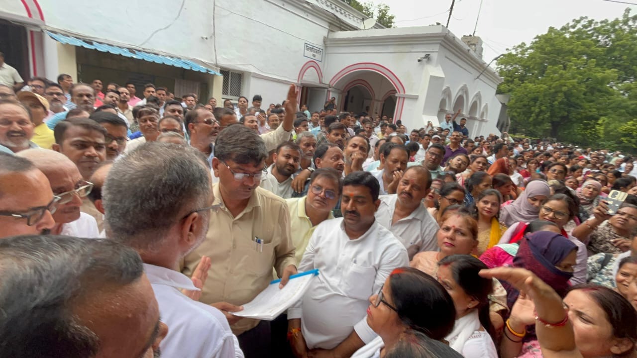 * हजारों की संख्या में विकास भवन परिसर में शिक्षक - शिक्षिकाओं ने किया प्रदर्शन