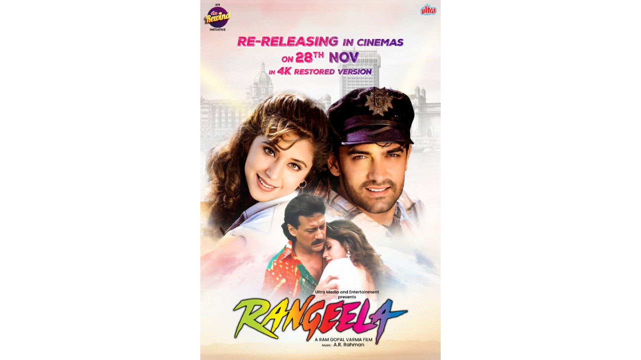 मुंबई (अनिल बेदाग) : 90 के दशक की यादों में रंग भरने आ रही है राम गोपाल वर्मा की क्लासिक फिल्म ‘रंगीला’। आमिर खान, उर्मिला मातोंडकर और जैकी श्रॉफ स्टारर यह सदाबहार रोमांटिक म्यूज़िकल 28 नवंबर को देशभर के सिनेमाघरों में दोबारा रिलीज़ होगी — इस बार अल्ट्रा मीडिया के “अल्ट्रा रिवाइंड” इनिशिएटिव के तहत 4K रिस्टोर्ड वर्ज़न में।