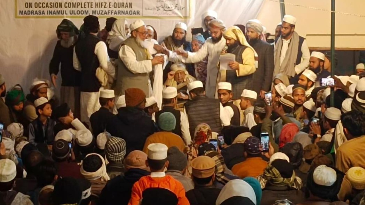 मुजफ्फरनगर । मुजफ्फरनगर के प्रसिद्ध दीनि शिक्षण संस्थान मदरसा इस्लामिया इनामुल उलूम में हाफ़िज़-ए-कुरआन की दस्तारबंदी के अवसर पर भव्य मुबारकबादी जलसे का आयोजन किया गया। रूहानी और ईमान अफ़रोज़ माहौल में संपन्न हुए इस कार्यक्रम की अध्यक्षता मौलाना खालिद ज़ाहिद क़ासमी ने की, जबकि सिराजुल मिल्लत हज़रत मौलाना बिलाल थानवी मुख्य वक्ता के रूप में मौजूद रहे।
