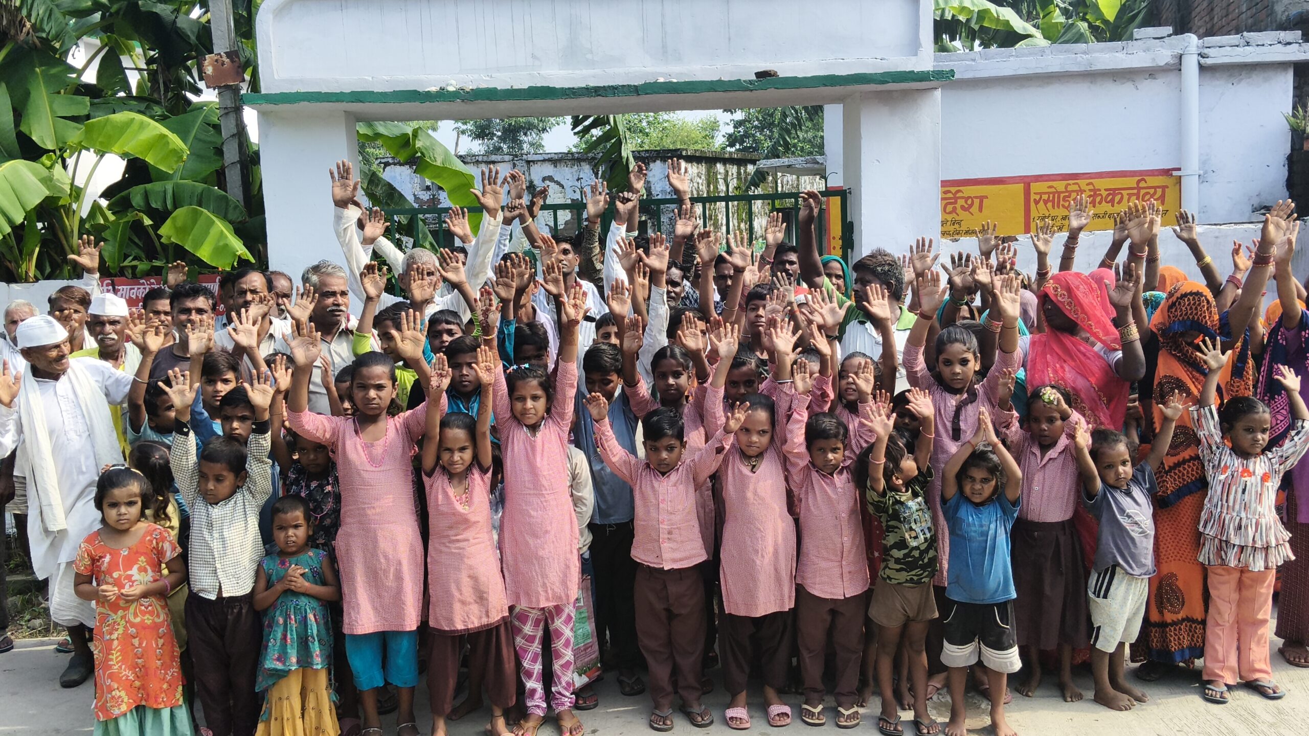 स्कूल विलय होने के विरोध में बच्चों ने अभिभावकों के साथ किया विरोध प्रदर्शन।