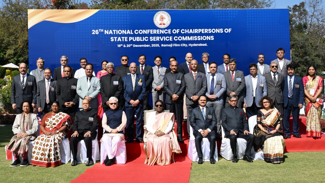 नई दिल्ली। द्रौपदी मुर्मु ने आज (19 दिसंबर, 2025) तेलंगाना के हैदराबाद में तेलंगाना लोक सेवा आयोग द्वारा आयोजित लोक सेवा आयोगों के अध्यक्षों के राष्ट्रीय सम्मेलन का उद्घाटन किया। इस अवसर पर अपने संबोधन में राष्ट्रपति ने कहा कि हमारे संविधान निर्माताओं ने संविधान का एक पूरा भाग सेवाओं और लोक सेवा आयोगों को समर्पित किया है। यह केंद्र और राज्यों के लिए लोक सेवा आयोगों की भूमिकाओं और कार्यों को दिए गए महत्व को दर्शाता है।