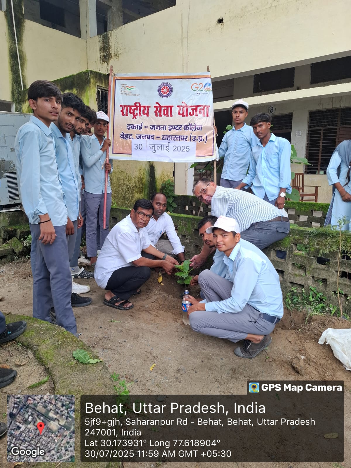 राष्ट्रीय सेवा योजना इकाई जनता इंटर कॉलेज बेहट के कार्यक्रम अधिकारी अरुण कुमार गौतम के निर्देशन में स्वयं सेवकों ने अनेक फल ,शुद्ध वायु ,छाया, इमारती लकड़ी , औषधियां आदि उपयोगी वस्तुएं देने वाले पौधों जैसे- नींबू ,सहजन,आंवला, नीम ,पीपल, बरगद,जामुन आदि का विद्यालय परिसर में रोपण किया। उन्होंने प्रत्येक स्वयं सेवक से वृक्षारोपण कार्यक्रम को अपने आसपास स्वयं करने तथा दूसरे नागरिकों को भी ऐसा करने हेतु प्रेरित करने को कहा ताकि प्रत्येक जीव शुद्ध वातावरण में श्वास ले सके। इस अवसर पर सर्व श्री रंजीत विश्वकर्मा, प्रदीप, शुभम ममगई,मोनू चौहान, कुशल पाल, आदि उपस्थित रहे। स्वयंसेवकों में रीतिका चौहान ,दानिश, कनिका रुहेला, काजल चौहान, गरिमा, अक्षित ,अमन ,अजीम ,आर्यन आदि रहे।