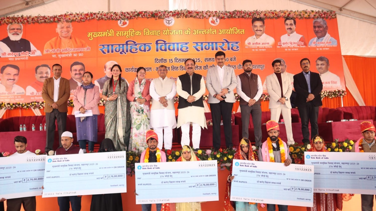 मुख्यमंत्री की अपेक्षा के अनुरूप वित्तीय वर्ष 2025-26 में नव निर्गत शासनादेशानुसार ऑनलाइन प्रणाली के आधार पर जिलाधिकारी मनीष बंसल के कुशल दिशा निर्देशन में “मुख्यमंत्री सामूहिक विवाह योजना” के अन्तर्गत जनपद में 185 हिन्दू जोड़े एवं 70 मुस्लिम जोड़े कुल 254 जोड़ों का विवाह उनके रीति-रिवाज के तहत सामूहिक रूप से जनपद के महाराज सिंह डिग्री कॉलेज फील्ड जनता रोड़ सहारनपुर में सम्पन्न कराया गया।